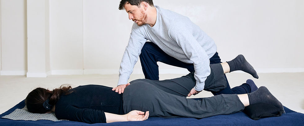 Lors de la séance, la personne est allongée sur un futon posé au sol (à domicile, il est important de prévoir un espace d’environ 1 m x 2 m).